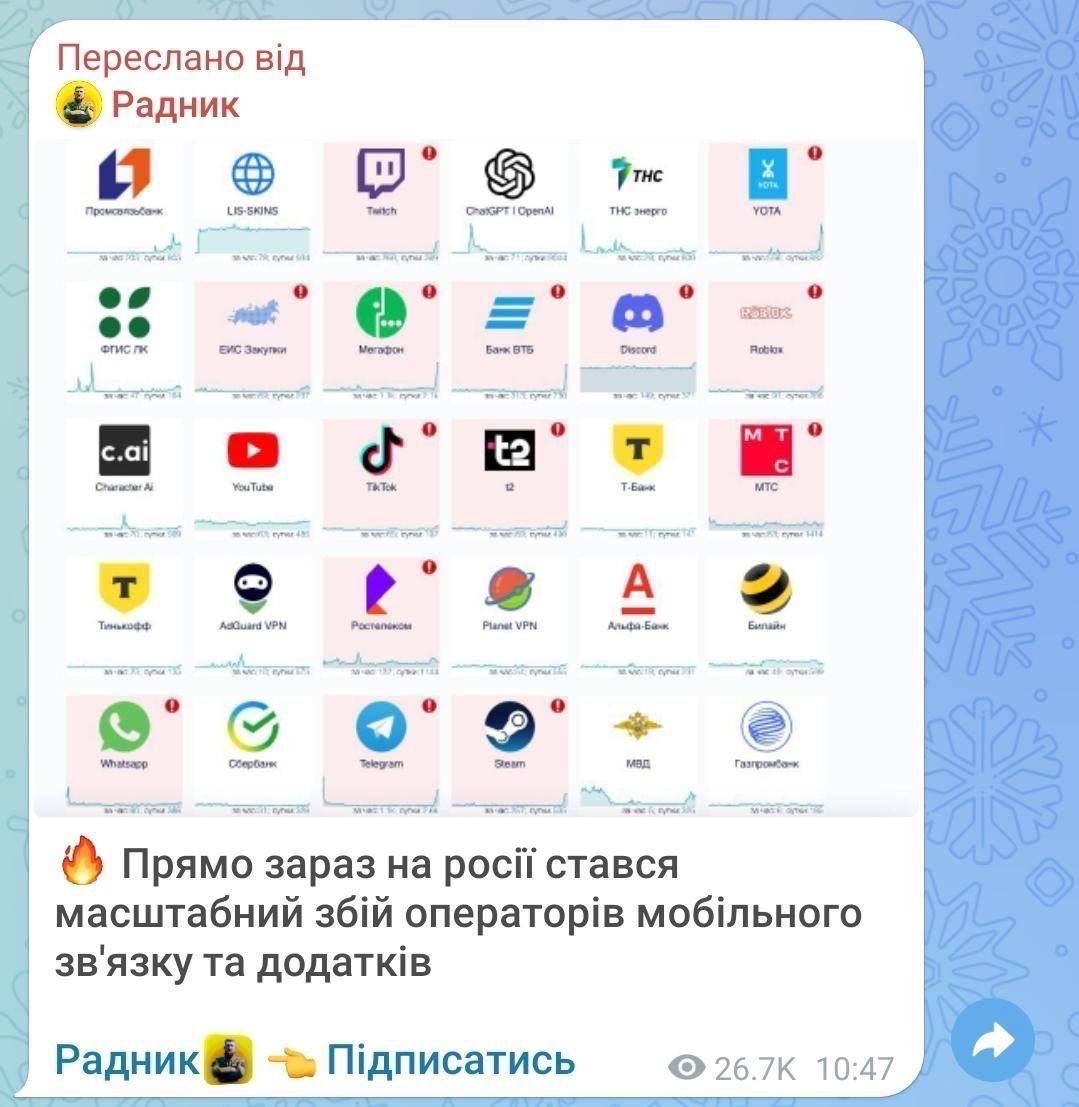 Нагадаємо, що на масові збої у роботі інтернет-сервісів, зокрема мобільних операторів та Telegram, росіяни почали скаржитися 24 січня. Труднощі спостерігалися й у фінансовому секторі, де клієнти банку ВТБ мали проблеми з проведенням операцій.