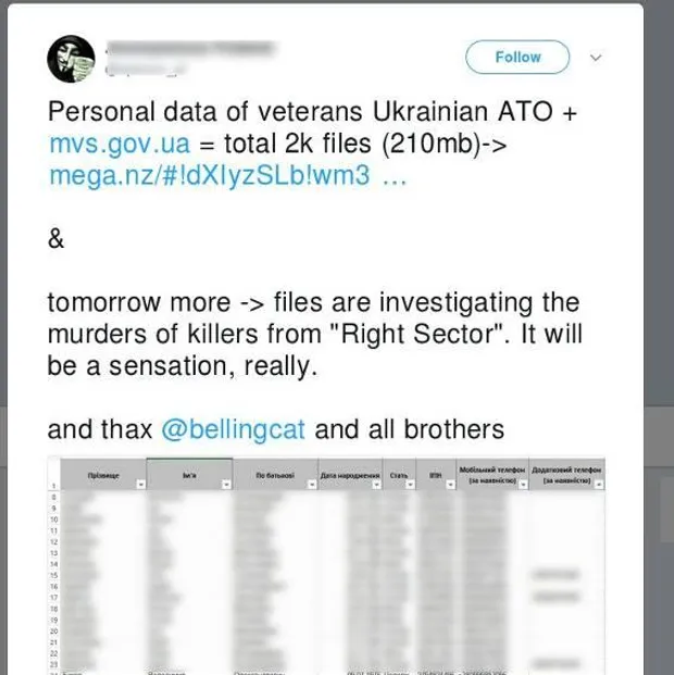За словами начальника Департаменту кіберполіції, користувач соціальної мережі під вигаданим ім’ям пропонував завантажити архіви з персональною інформацією учасників АТО.