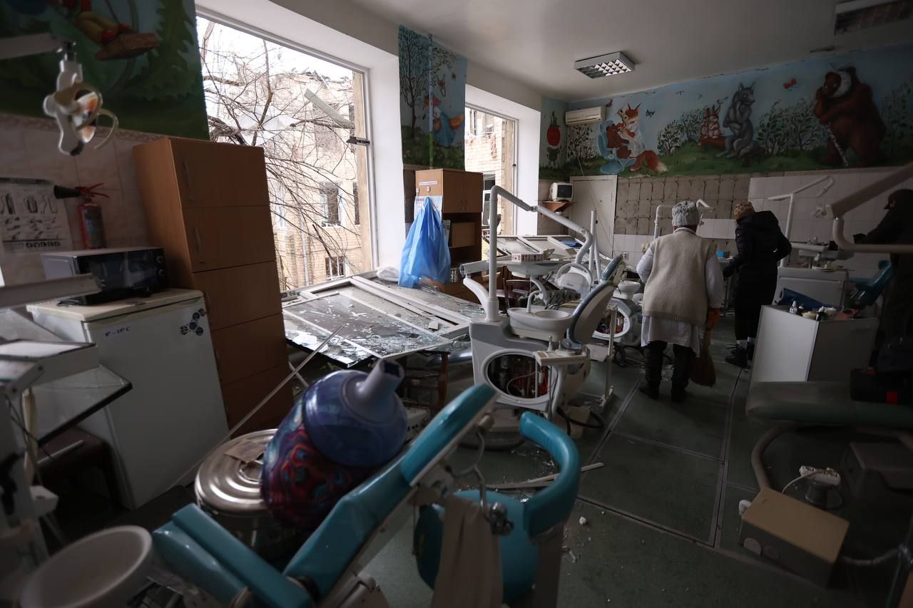 Ще один удар прийшовся по медичній установі, що в центрі міста. Відомо, що постраждали 4 жінки, які є пацієнтками цього медзакладу.