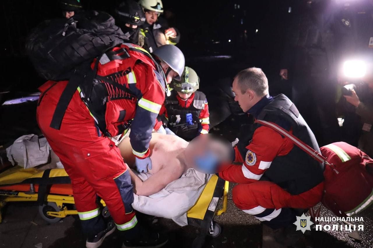 Після 5:00 рятувальники дістали з-під завалів багатоповерхівки чоловіка, який був заблокований після удару. Він перебуває у свідомості, попросив води, але пересуватися самостійно не зміг, тепер він під опікою медиків.