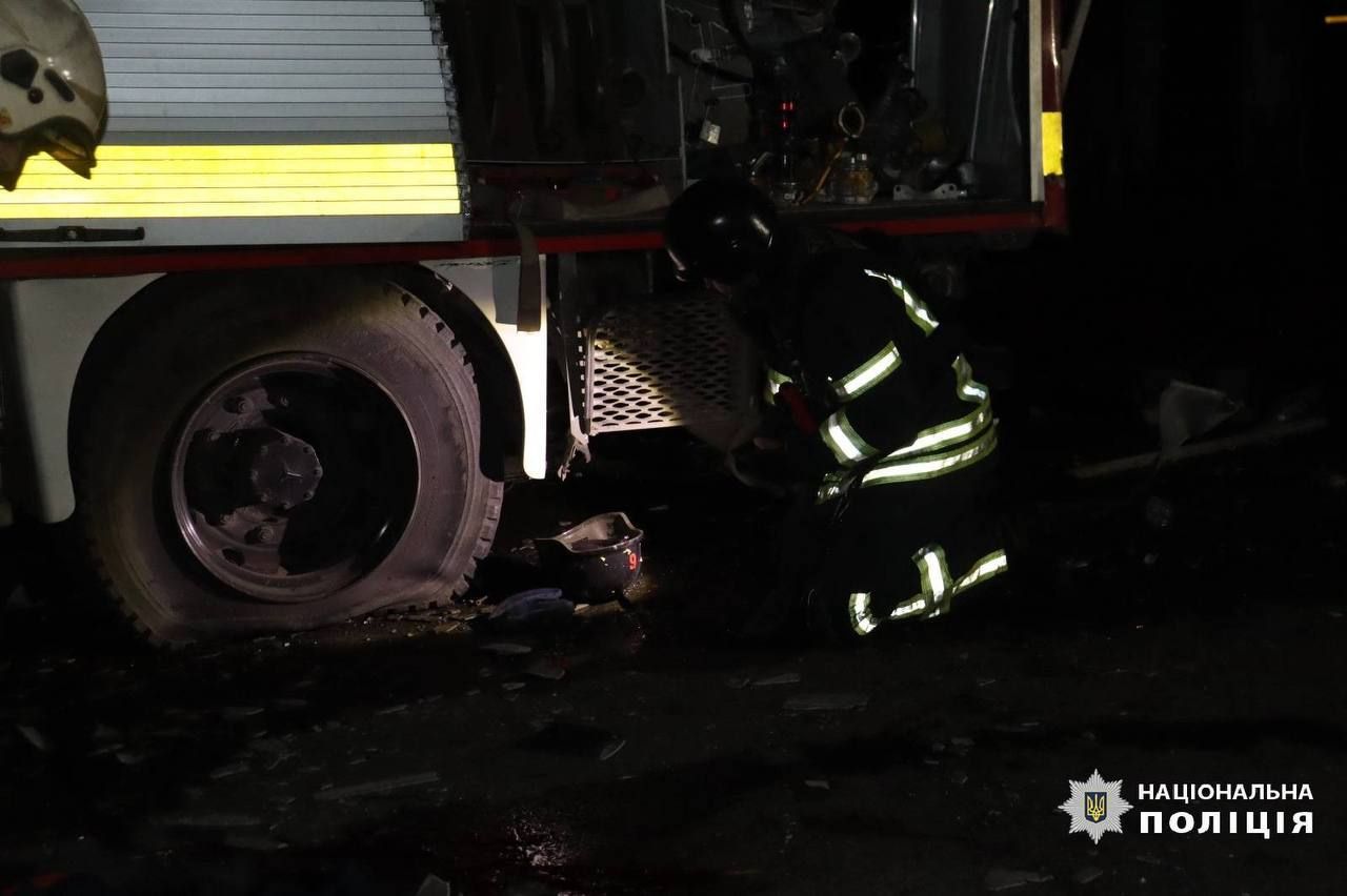 Рятувальники, що прибули за викликом на одну з адрес, зазнали повторного удару безпілотниками. Двоє з них від отриманих поранень загинули на місці, ще один помер по дорозі в лікарню. Поранень зазнав також один рятувальник. Пошкоджено три одиниці техніки ДСНС,