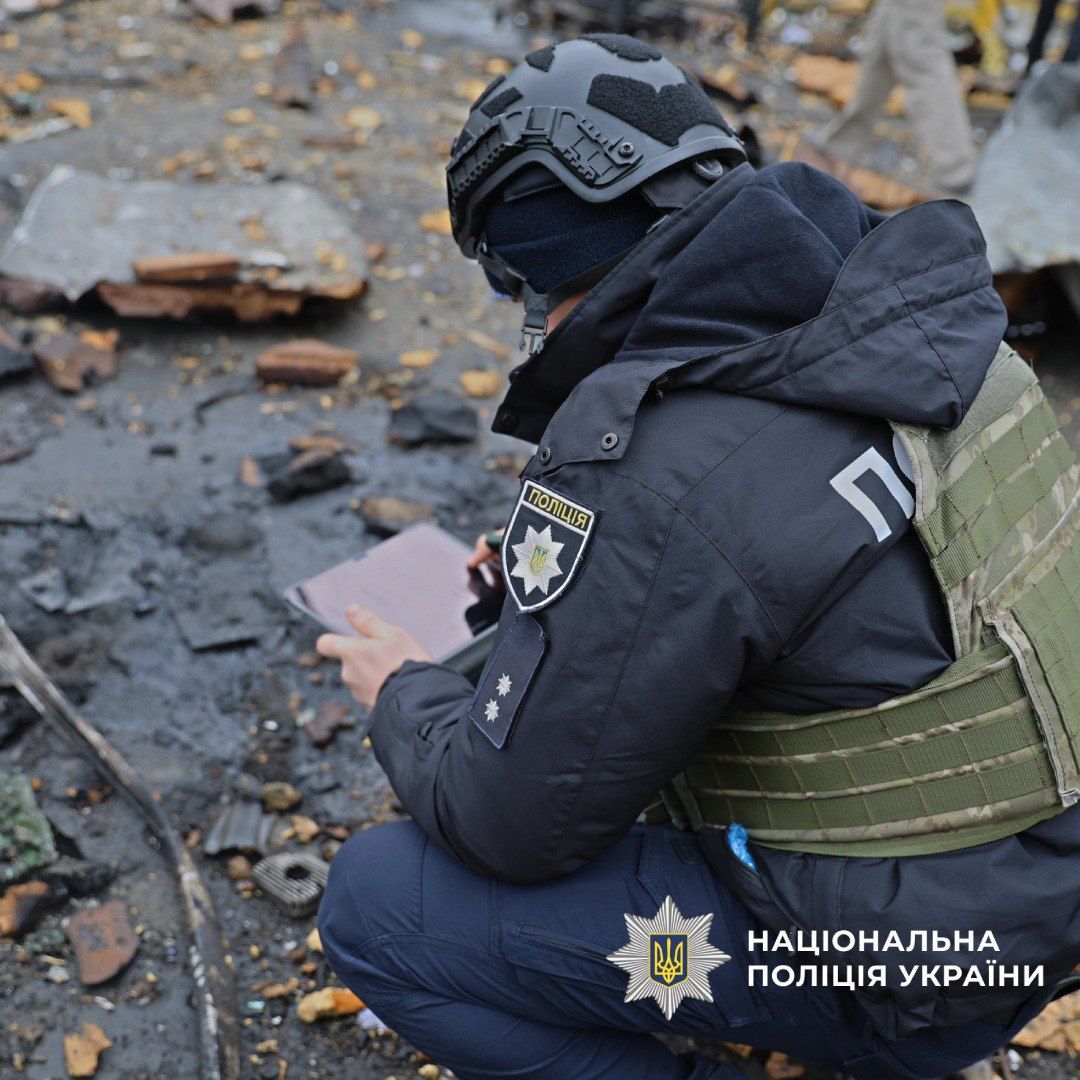 На місці ворожих ударів працюють всі профільні служби. Поліцейські збирають докази чергового воєнного злочину росіян проти мирного населення.