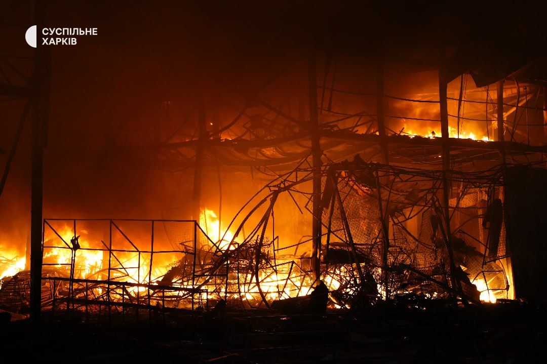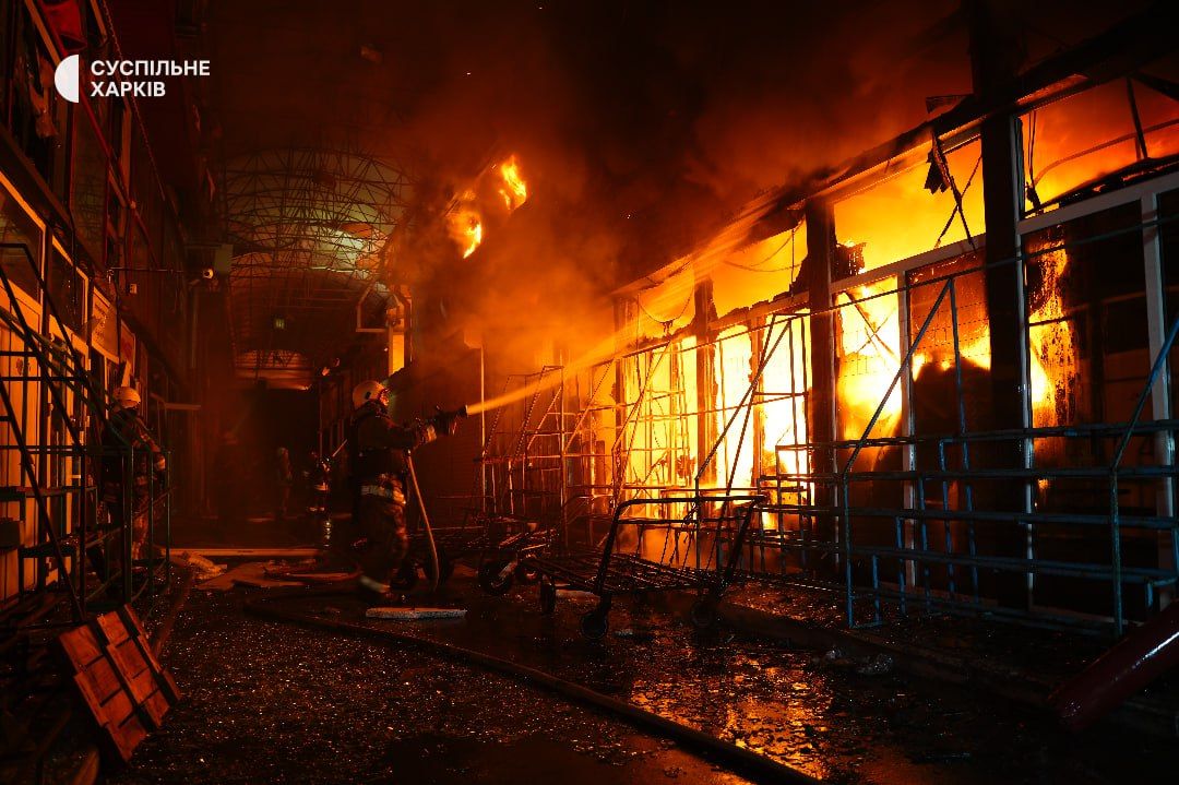 Кадри пожежі на ринку у Київському районі Харкова / Фото "Суспільне Харків"
