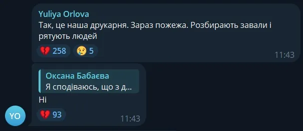 Раніше в ХОВА повідомили про те, що росіяни вдарили по цивільному підприємству, яке займається друком. Гендиректорка "Віват" Юлія Орлова у книжковій спільноті розповіла, що на виробництві сильна пожежа – наразі рятувальники розбирають завали та шукають людей.