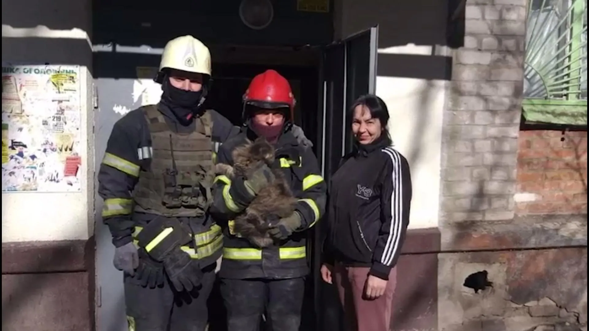 Врятований кіт у Харкові / Скриншот відео ДСНС