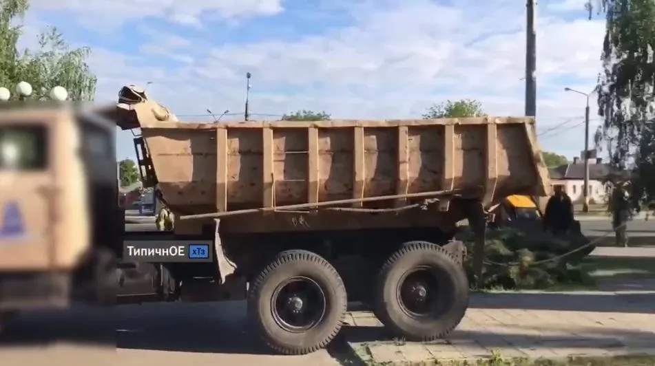 Вантажівка поруч з пам'ятником / скриншот з відео