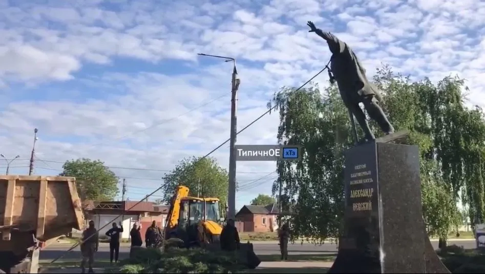 На відеозаписі видно як за допомогою вантажівки та тросів здійснюється демонтаж триметрової бронзової фігури Олекандра Невського. Наразі не відомо хто саме був ініціатором та виконавцями цього дійства.