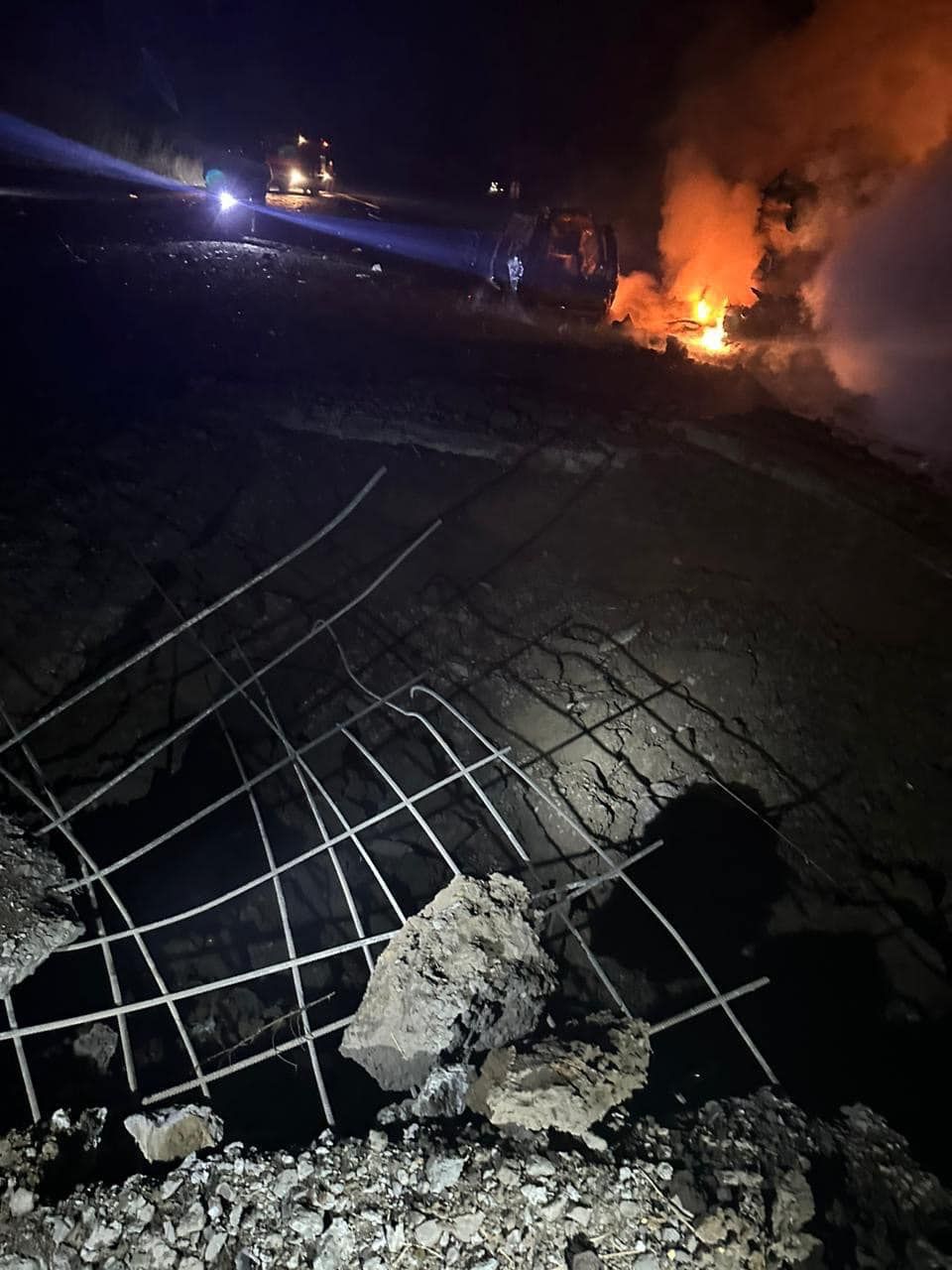 - О 01:23 він зазначив, що у Дергачівській громаді окупанти ракетою влучили у магазин. Відомо, що горіли також автомобілі. На ту хвилину повідомлень про постраждалих не надходило.