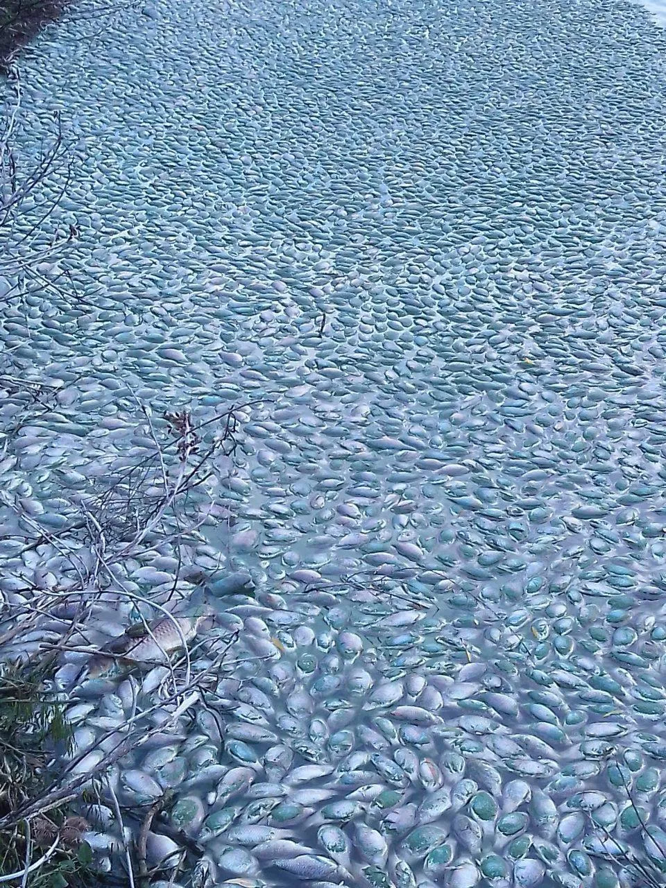 Ще один доказ звірств окупантів опублікувала радниця з питань комунікацій керівника Офісу Президента України Дарина Зарівна. На фото – масовий мор риби на Херсонщині.