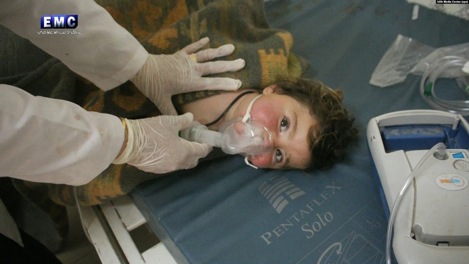 Хан-Шейхун, Сирія. 4 квітня 2017 року. Медики рятують дитину після хімічної атаки / Фото Idlib Media Center