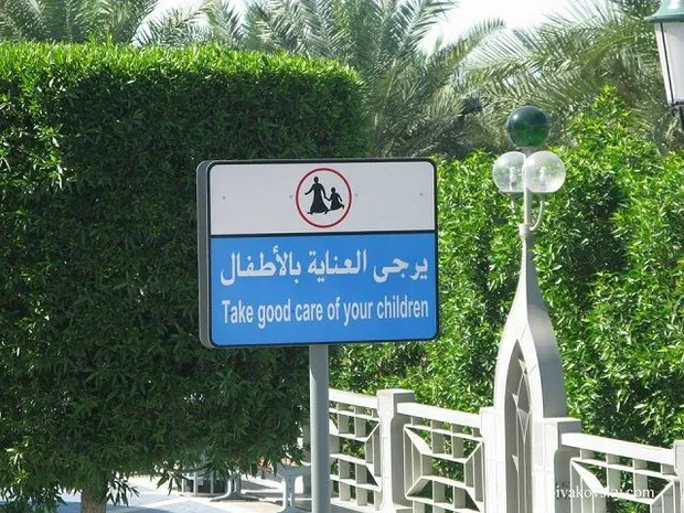 Дорожный знак на пешеходном переходе. Дубаи, ОАЭ