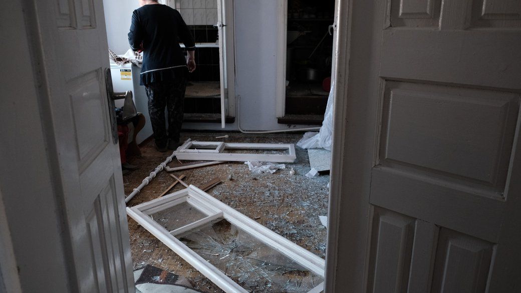 Після падіння уламків "Шахеда" в будинку похилені вікна – деякі з них лежать посеред кімнат. На тих, які вціліли – залишилися тріщини. У господарських будівлях повністю зруйнований дах, шифер з нього лежить на землі.