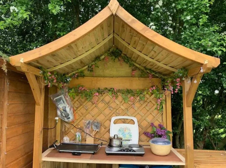 На подвір'ї власники встановили літню кухню, туалет, душ та раковину. На відкритому повітрі також встановили гриль. Власники будинку "Гобіта" кажуть, що це місце дійсно фантастичне, адже вночі можна побачити різних диких тварин, а вдень – відчути себе ближче до природи.
