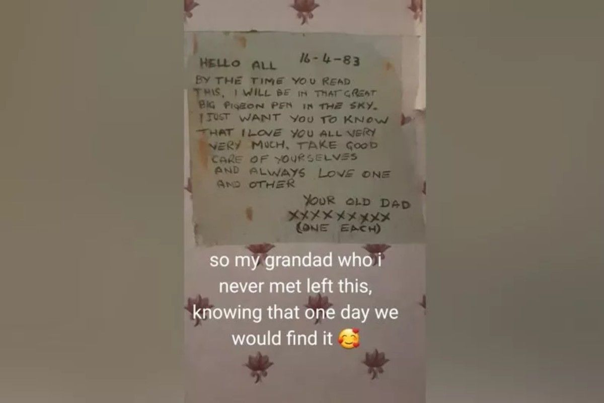 Зворушливе відео про записку, залишену дідусем у стіні за два роки до своєї смерті, стало вірусним у тікток і зібрало сотні тисяч переглядів.