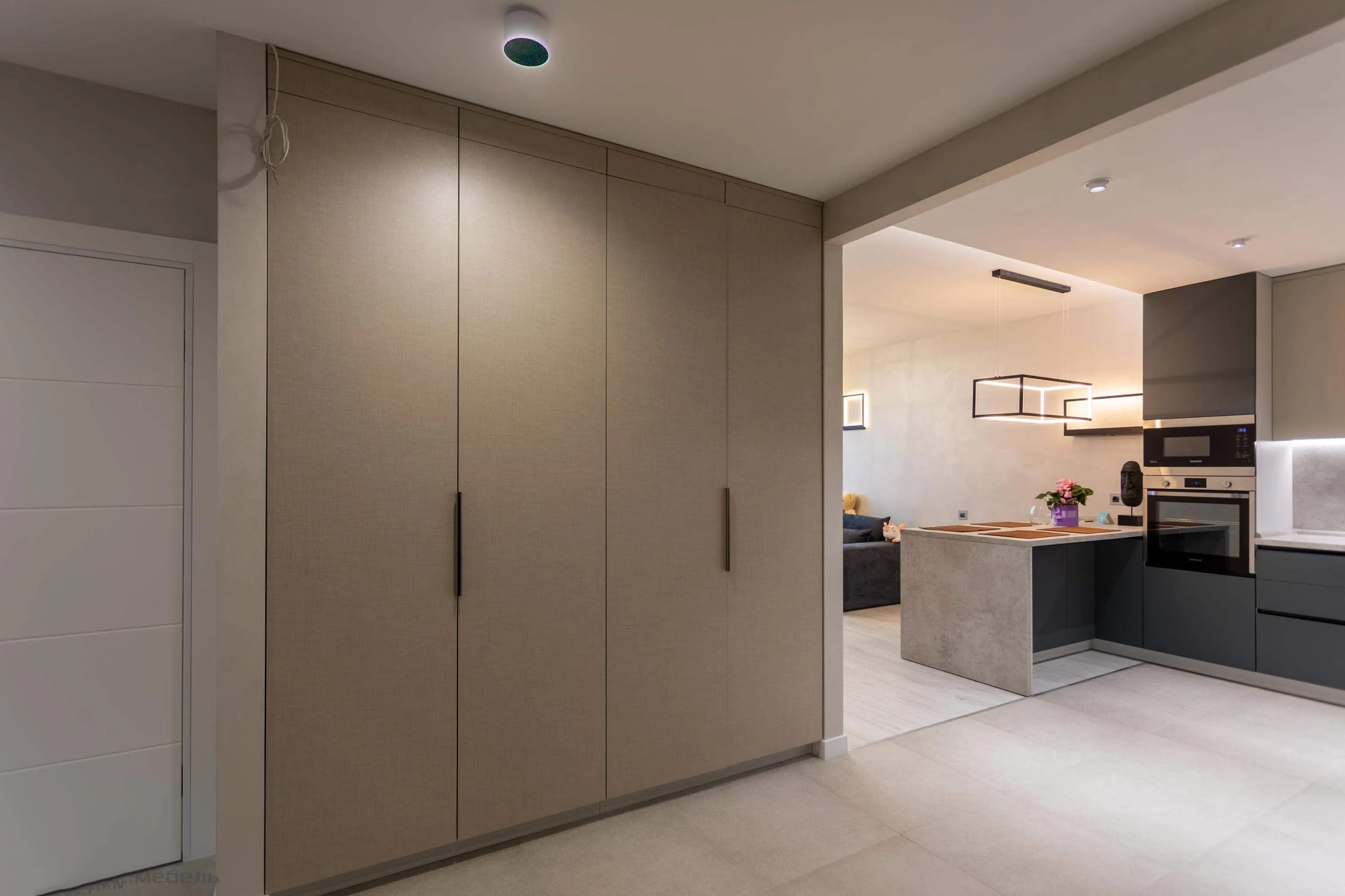 - Гладкі поверхні без виступів: Вибір меблів та фурнітури без ручок або з вбудованими механізмами відкривання спрощує процес прибирання.