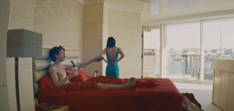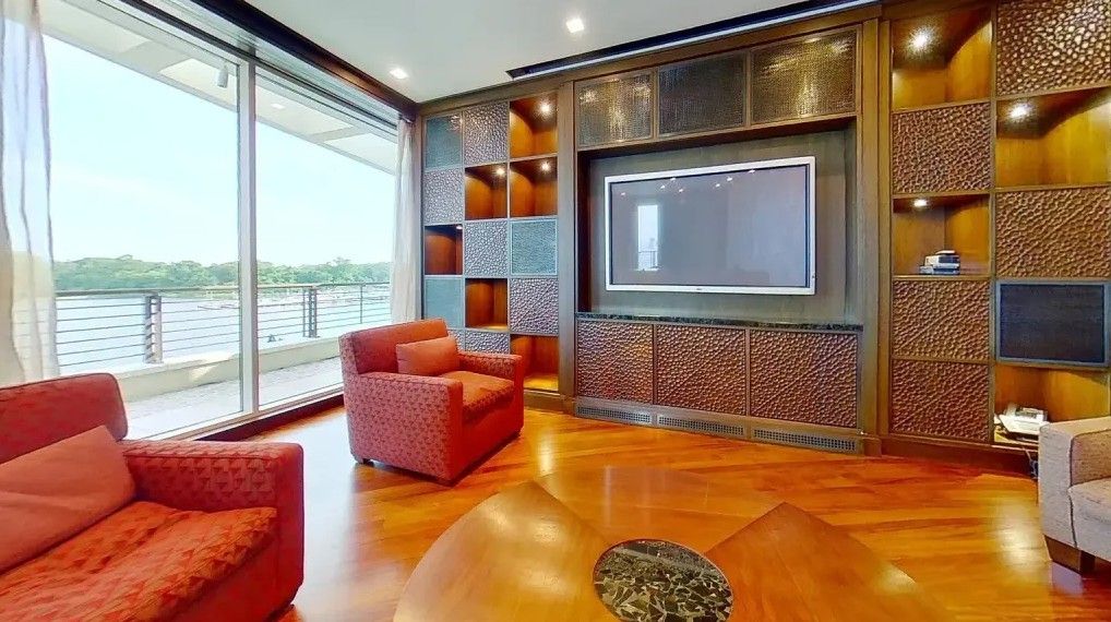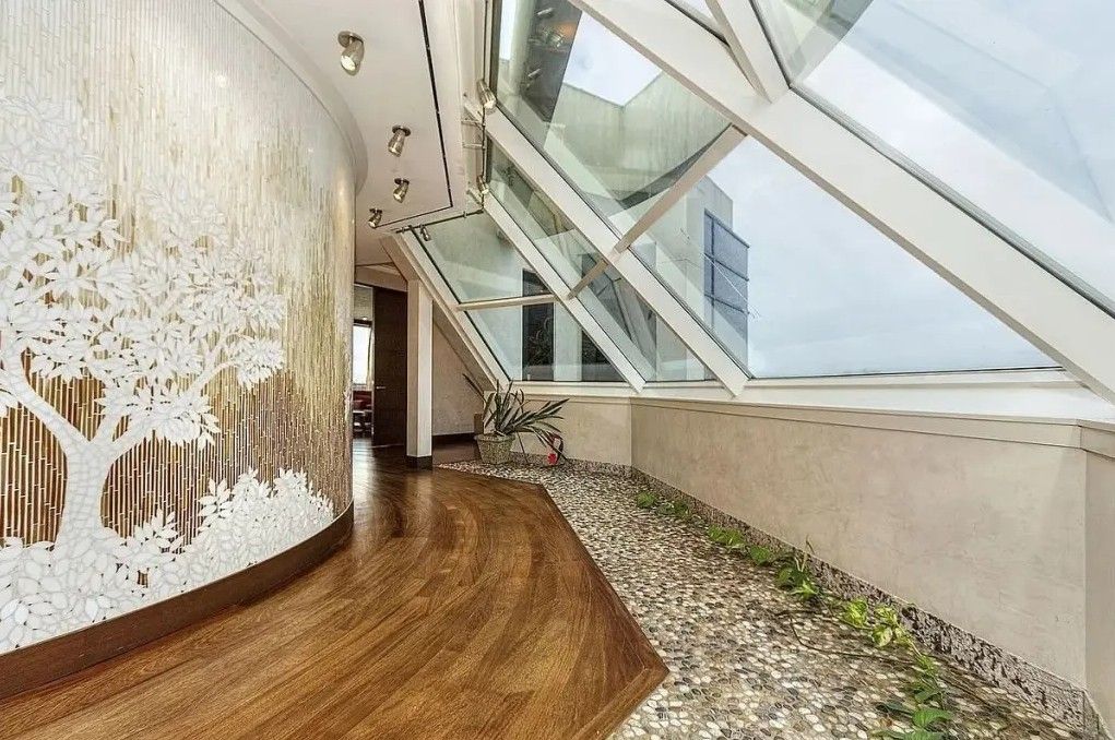 Внутри дом имеет роскошный вид. Так, в имении есть 5 спален, 4,5 ванны, бассейн площадью 92 квадратных метра, кинотеатр, помещения для персонала и огромный гараж. Кожаная мебель, отдельный спа-салон, мрамор и затемненное стекло очаровали режиссера "Аноры". Кроме того, Бейкер увлекся идеей снимать ленту именно здесь, ведь дом буквально принадлежит русским.