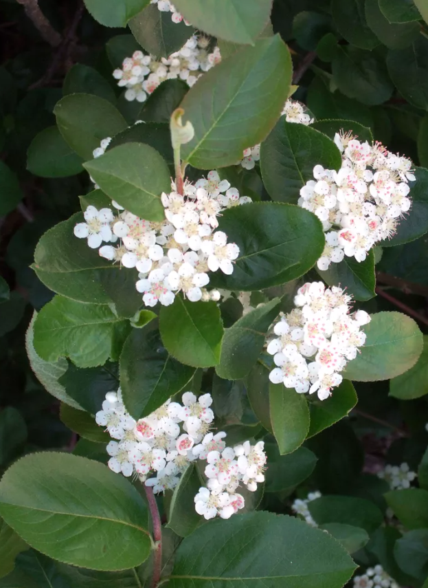 Речь идет об аронии или черноплодке. Весной ее кусты покрыты нежными белыми цветами, летом – блестящими темно-зелеными листьями, а осенью демонстрируют яркие "огненные" листья.