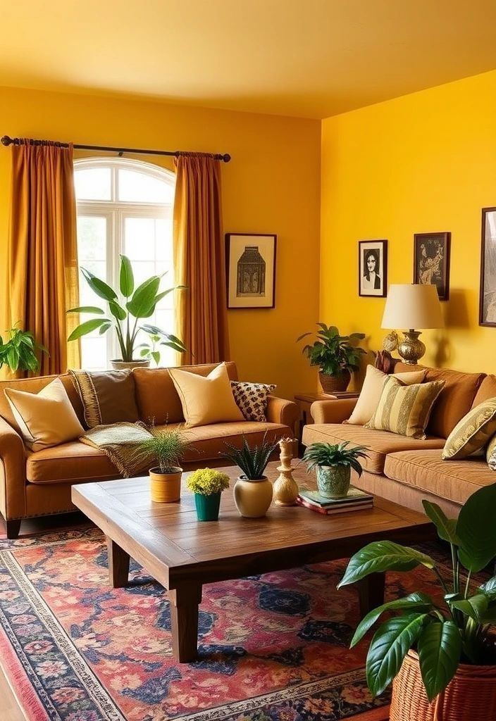 Желтые акценты – это хорошо, но полностью лимонная гостиная кажется устаревшей и слишком яркой. Такой цвет в большом количестве утомляет. Лучше заменить его на теплые оттенки: охру, горчичный, примулу, медовый или старое золото.