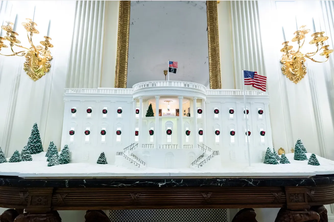В Государственной столовой выставили пряничный Белый дом, весом более 55 килограммов. Он содержит точную копию Желтой овальной комнаты в частных покоях на втором этаже, что позволяет увидеть внутреннее оформление резиденции.