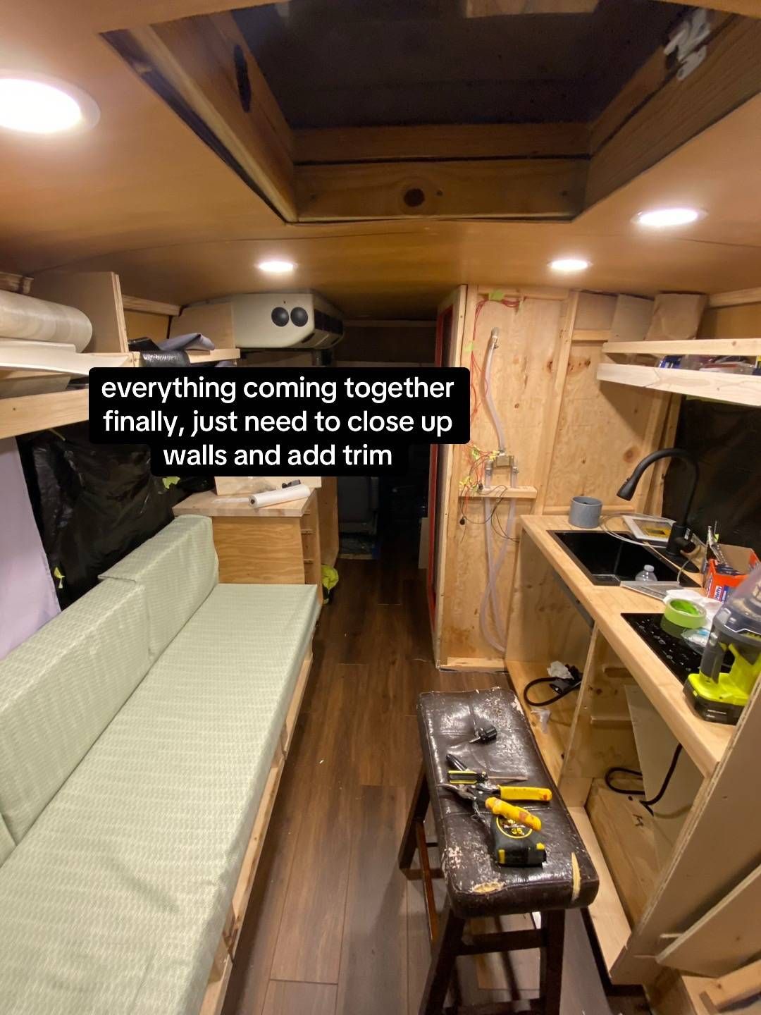 Она хотела, чтобы автобус был как маленькая квартира: с водой, туалетом, душем и кроватью. 80 – 90% всех работ девушка выполнила самостоятельно. Лишь иногда обращалась к мастеру для помощи с электричеством и сантехникой.