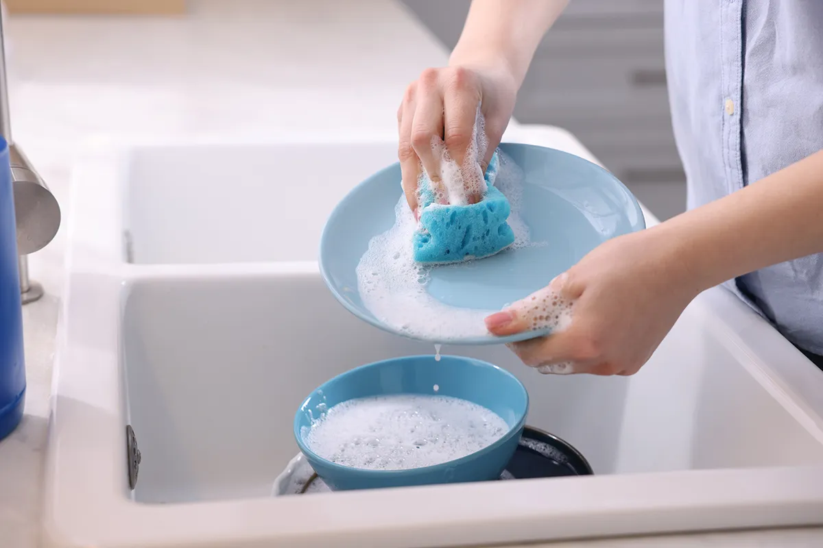 Металлические следы от ножей и вилок на тарелках можно устранить содовой пастой. Смешайте порошок с небольшим количеством воды, нанесите на губку и отполируйте посуду круговыми движениями.