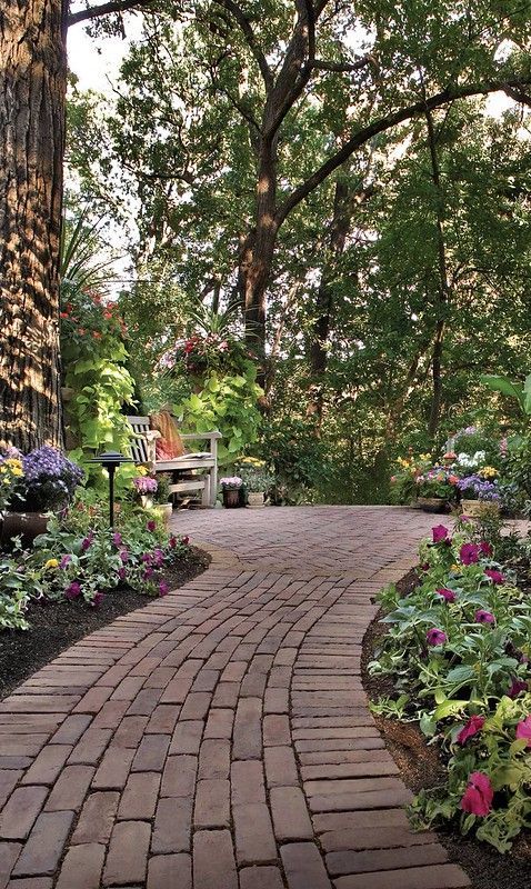 Не дайте пропасть старым кирпичам, которые завалялись у вас во дворе после предыдущего проекта. Из них можно собственноручно сделать очаровательную садовую дорожку.
