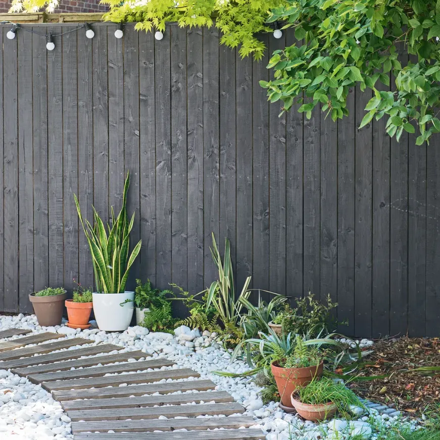 Ограждения в оттенках фиолетового и розового тоже отвлекают внимание от других элементов сада. Кроме того, они быстро выгорают на солнце, из-за чего сад кажется бледным и тусклым.