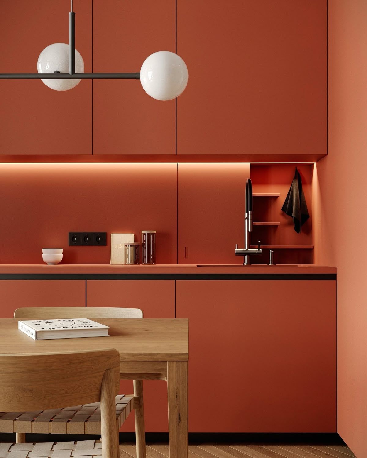 Як пише Roccia, персикові та теракотові тони допомагають підкреслити привабливість кухонного простору та зробити його більш "живим". Вони ідеально вписуються в сучасні тенденції дизайну, де домінують заспокійливі і природні відтінки, що роблять приміщення комфортним для тривалого перебування.