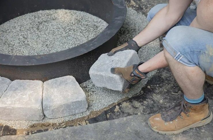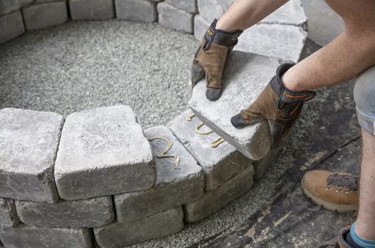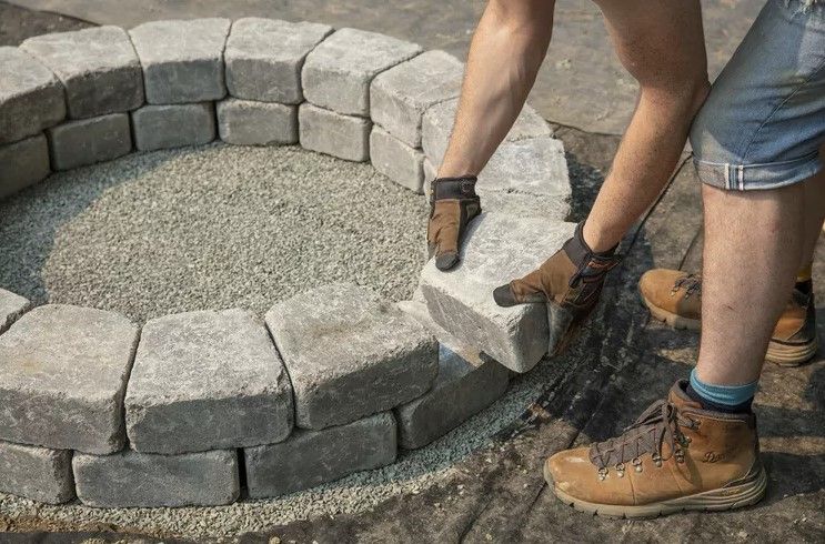 Коли фундамент з гравієм готові, можна починати встановлювати камінні яруси майбутнього вогнища. Так, на один рівень потрібно 18 блоків. Другий ярус потрібно вкладати так, щоб кожен блок перетинав два блоки попереднього рівня. Такий класичний спосіб будівництва дозволить збудувати міцні стіни садового вогнища.