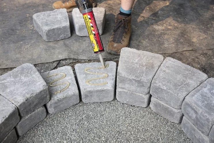 Щоб блоки краще трималися, їх потрібно скріпити ландшафтним клеєм.