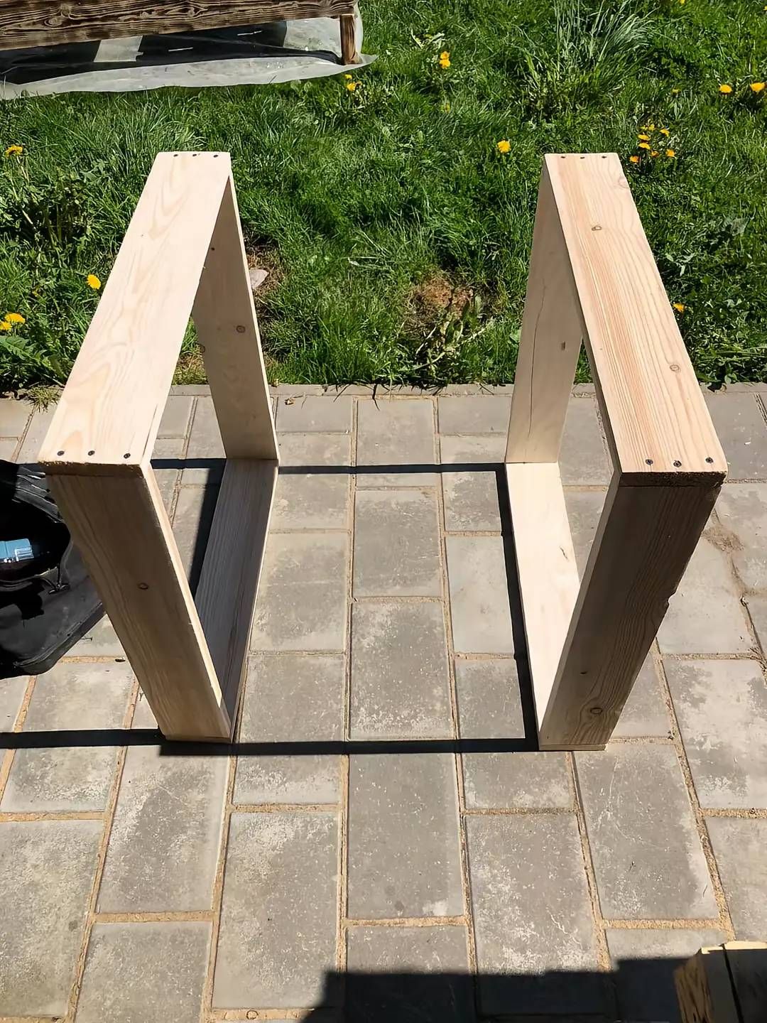 Спочатку слід з'єднати між собою 4 дощечки у квадрат. Це буде основою крісла. Знадобиться 2 таких квадрати, які стануть ніжками крісла.