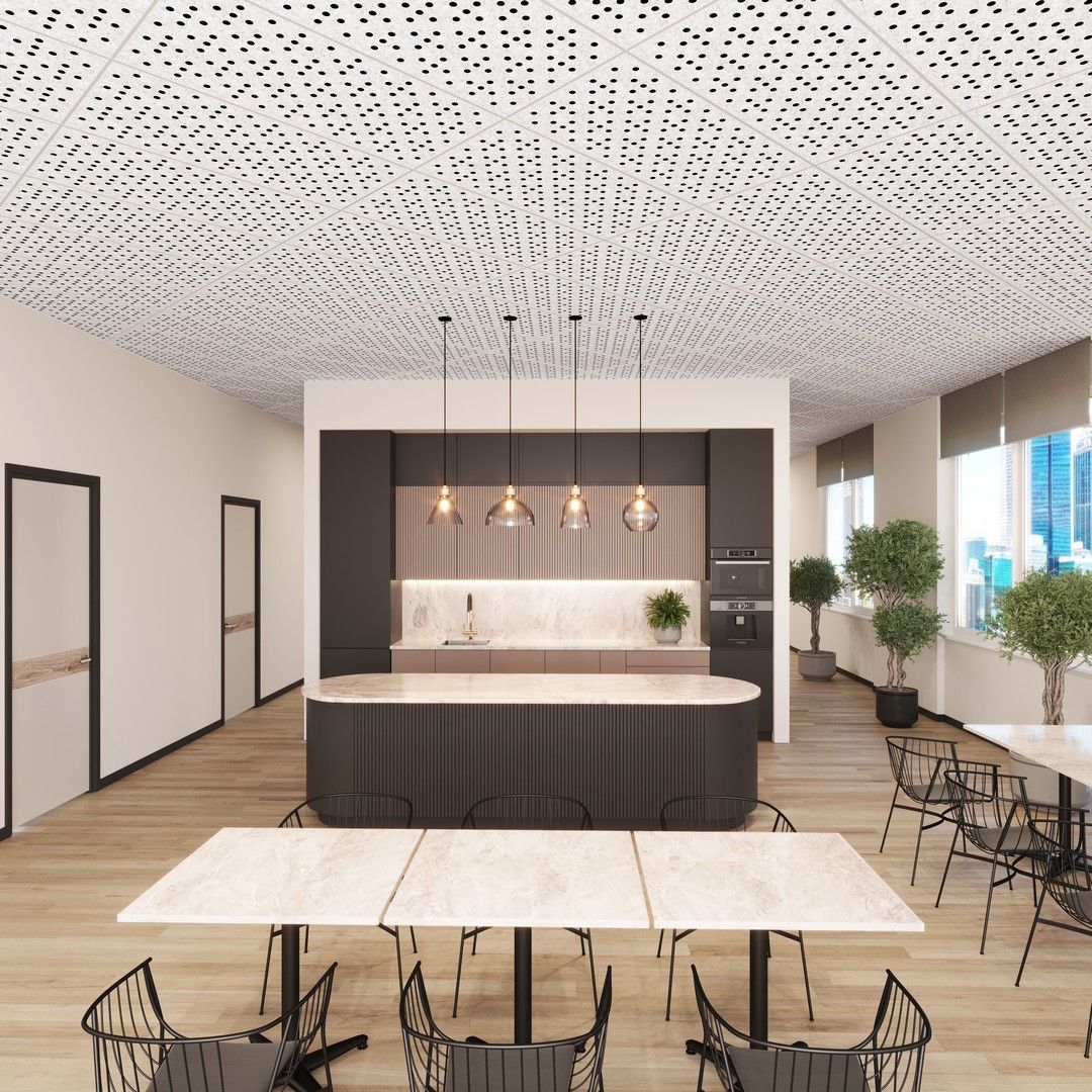 У квартирах із відкритим плануванням важливо зменшити шум і луну. Перфоровані панелі, текстильні модулі чи спеціальні звукопоглинальні плити допомагають зробити простір комфортнішим і тихішим.