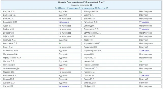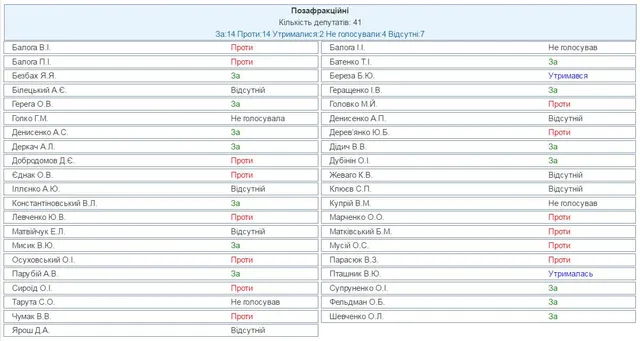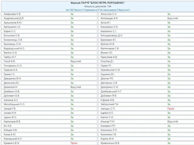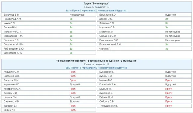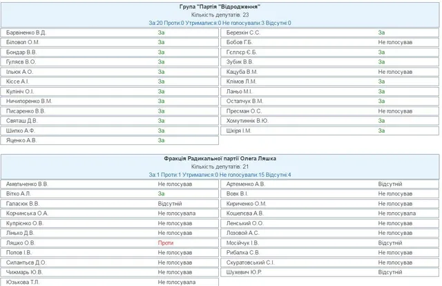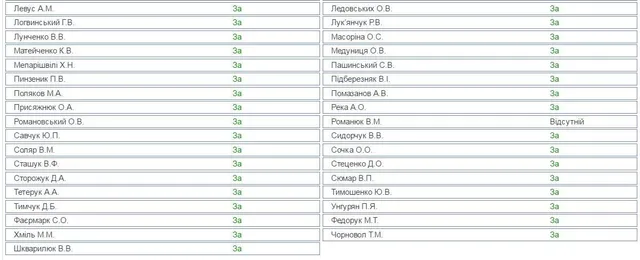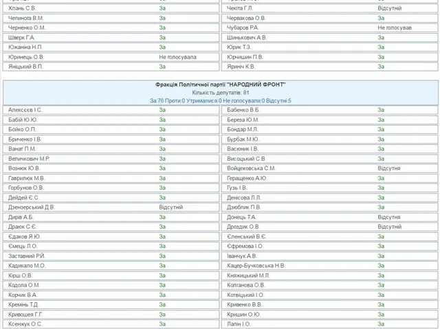 В основному голоси віддали депутати з "Блоку Петра Порошенка", "Народного фронту" та депутатських груп "Відродження" і "Воля народу".