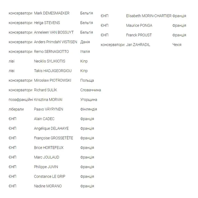 З політичних сил відзначились праворадикали. Із 75 представників двох праворадикальних груп у складі Європарламенту "проти" проголосували 60 депутатів.