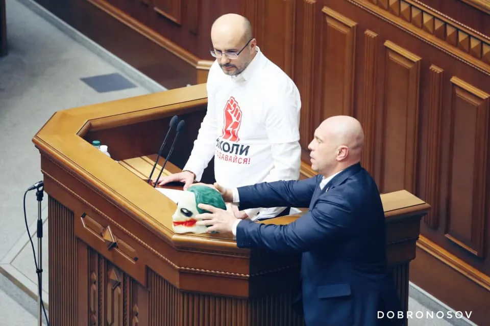 Кива поклав маску Джокера на трибуну, коли Сергій Рудик складав присягу / фото: Yan Dobronosov