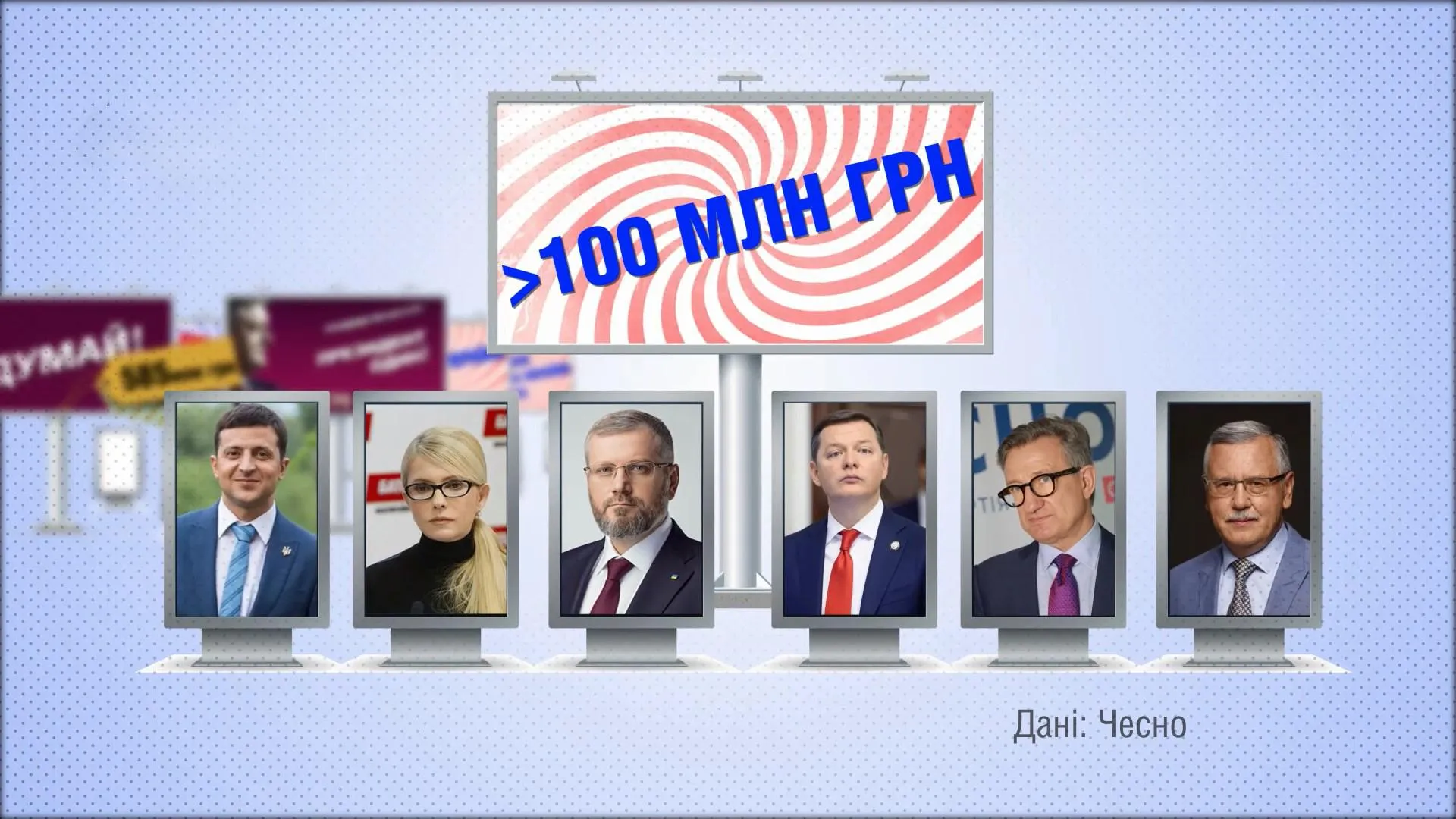Загалом 1,7 мільярда гривень витратили кандидати у президенти на рекламу у першому турі виборів.