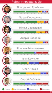 Рейтинг "правдорубів" очолили Порошенко, Гройсман і Саакашвілі