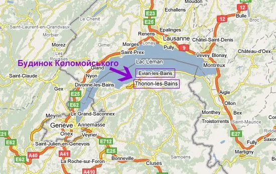 За інформацією Української правди, будинок Коломойського розташований на французькому узбережжі Женевського озера, поблизу міст Тонон та Евіан (саме ці курорти дали назву відомим мінеральним водам).