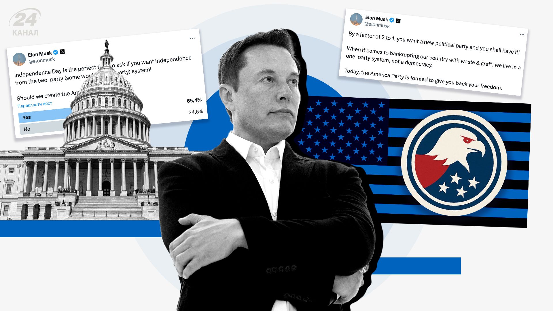 Наступного дня Маск виконав обіцяне – оголосив у X про створення нової політичної сили під назвою America Party, заявивши: