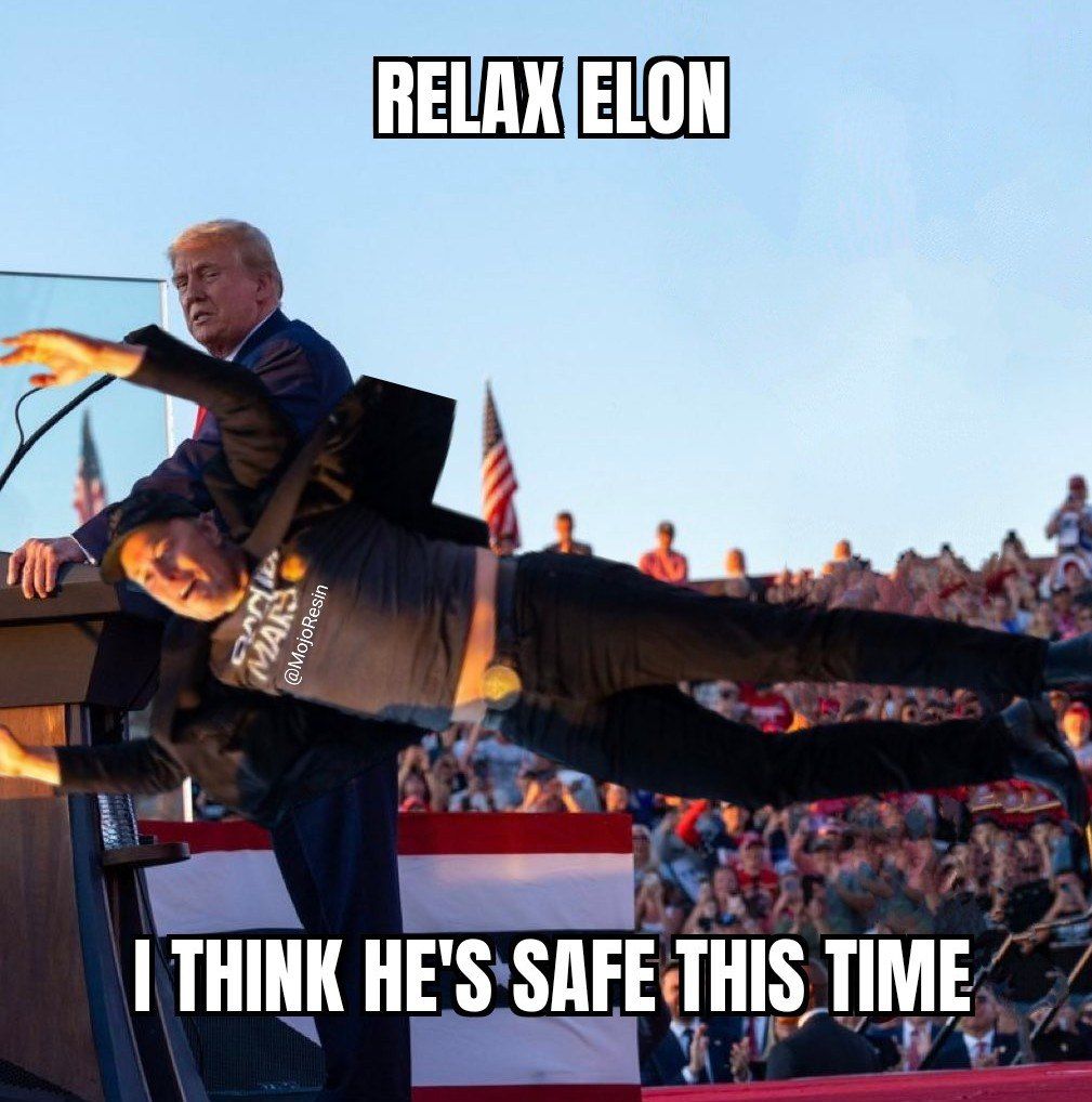 Радісна поза Маска на мітингу Трампа породила смішні меми / Фото з акаунту @SoGoodWeNamedlt у соцмережі Х
