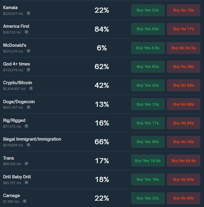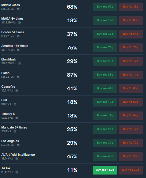 Усі ці мільйони доларів американці поставили на різні слова, які Трамп може використати у своїй промові.