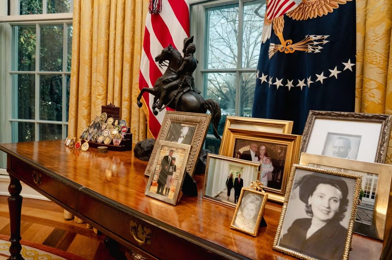 Замість сімейних світлин Байдена в Овальному кабінеті з'явилися сімейні фото Трампа.