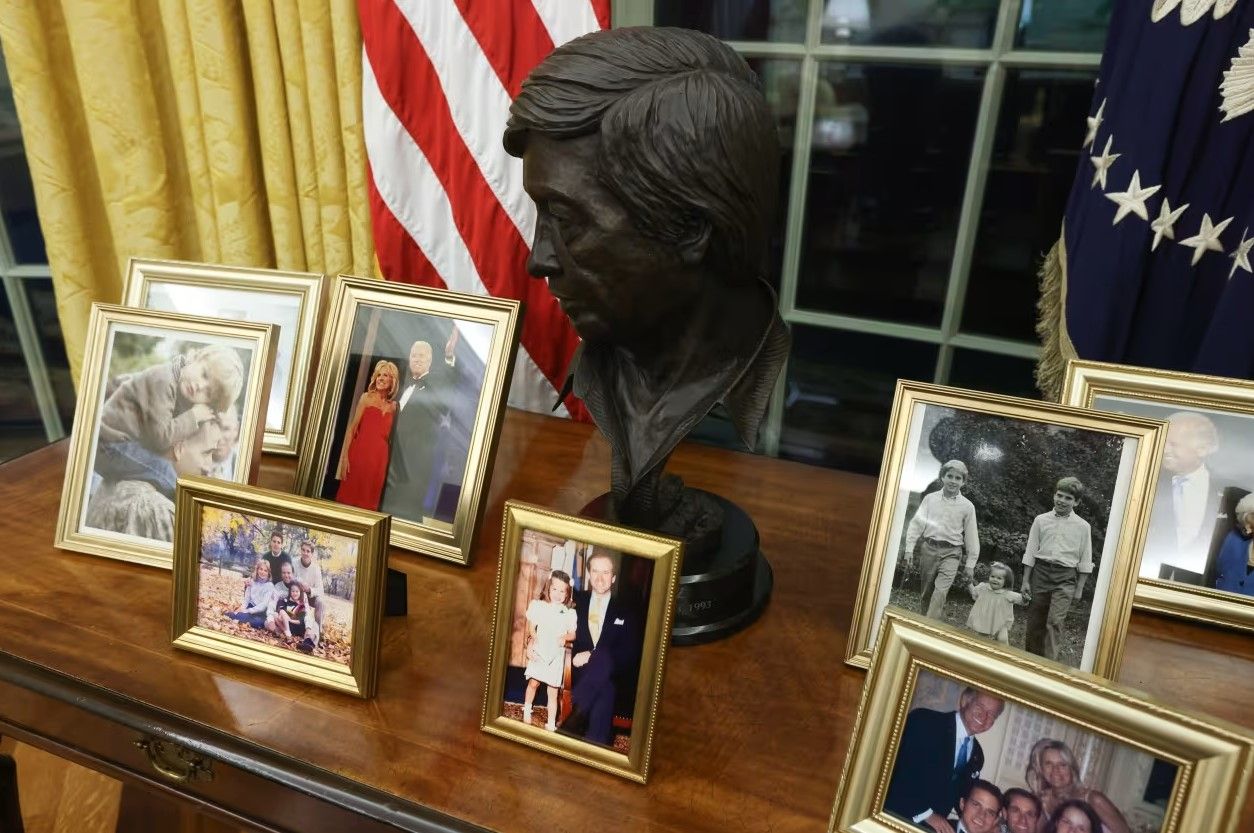 Нині у кабінеті з'явилися не лише сімейні фото Трампа, а й срібні орли, червона кнопка та бюст Вінстона Черчилля. Про це повідомляє 24 Канал з посиланням на The Wall Street Journal.