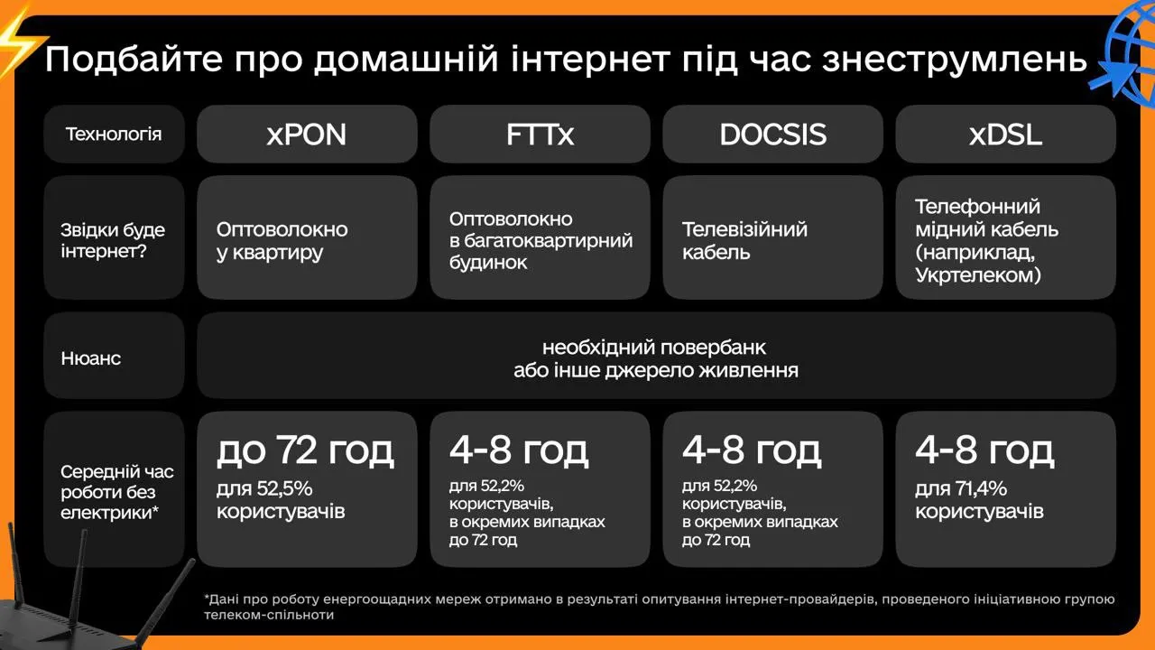 Щоб знеструмлення не застали вас зненацька, подзвоніть провайдеру зараз та дізнайтеся, яка технологія підійде саме вам,