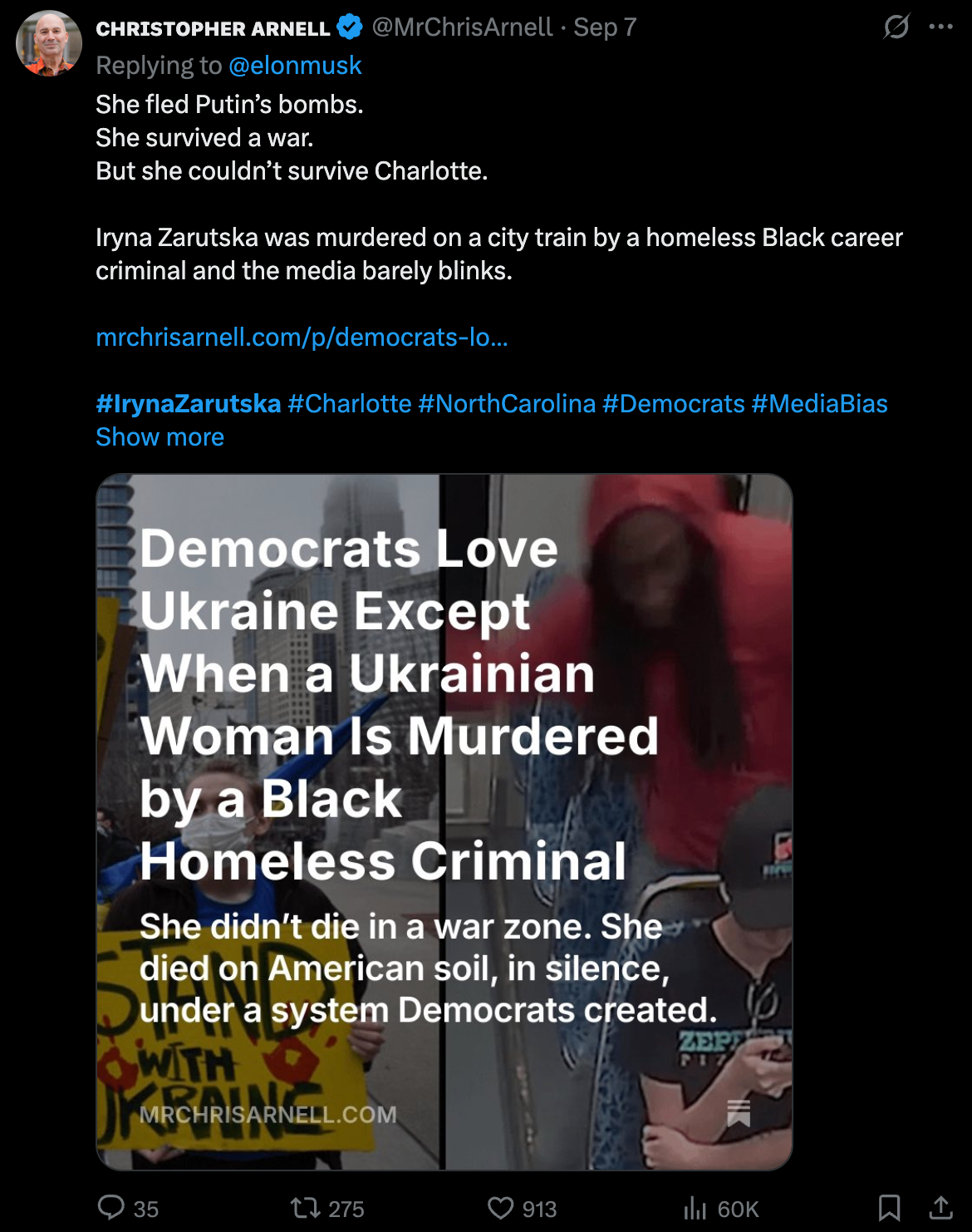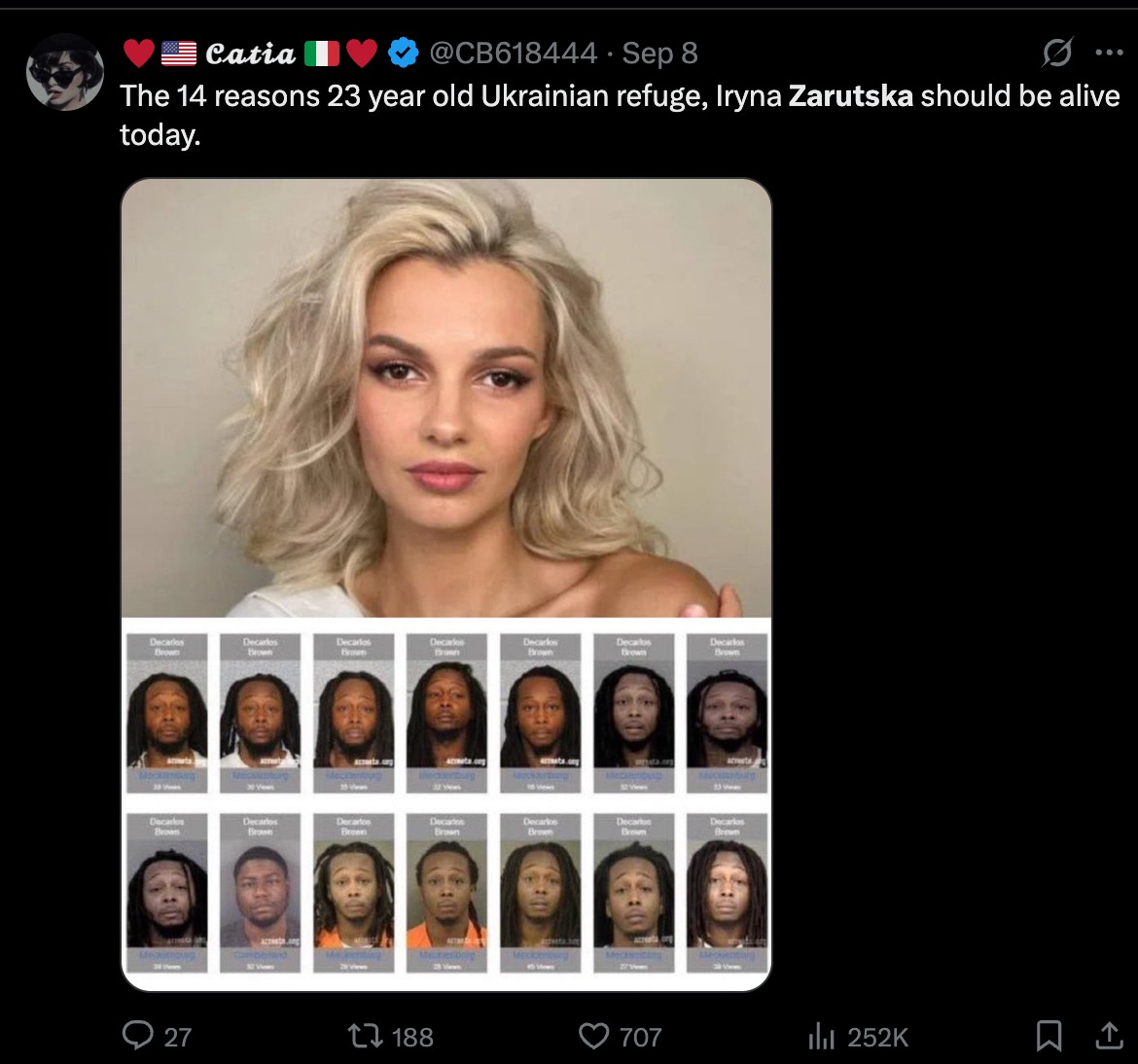 Зазначимо, що ім'я Ірини та відео стали поширювати у США. Так, на платформі Х з'явилися тисячі постів з хештегами #IrynaZarutska, #JusticeForIryna, #Zarutska.