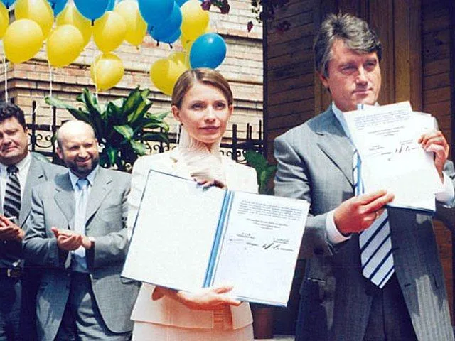 На Помаранчевій революції Тимошенко і Ющенко стояли пліч-о-пліч. Після цього Ющенко стає Президентом, а 4-го лютого 2005 Тимошенко стає прем'єром.