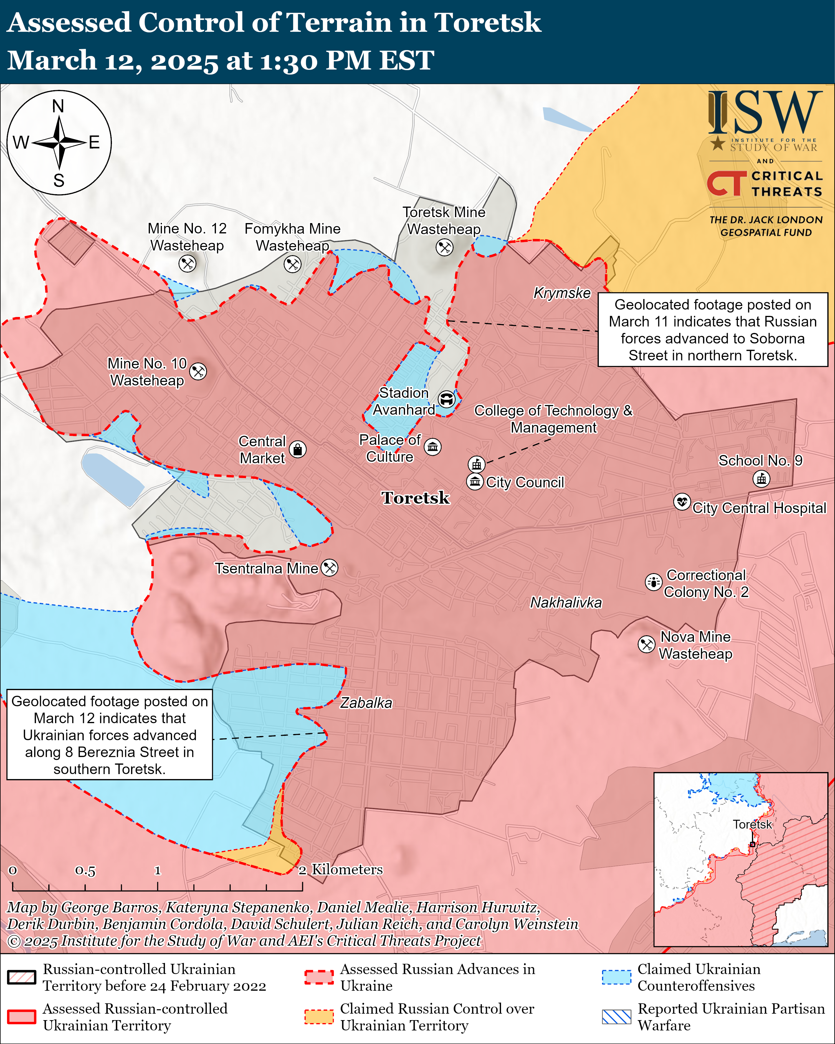 - А от на Торецькому напрямку успіхи мали обидві сторони: ЗСУ пройшли вулицею 8 Березня на півдні Торецька, а росіяни – вулицею Соборна та до вулиці Грушевського в північній частині міста.