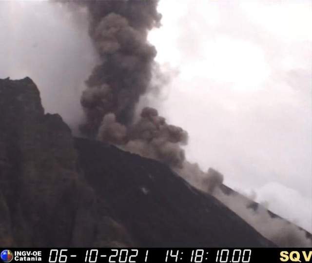 Це трапилось 6 жовтня орієнтовно о 14:17. Згодом один з кратерів вулкану випустив потік лави.