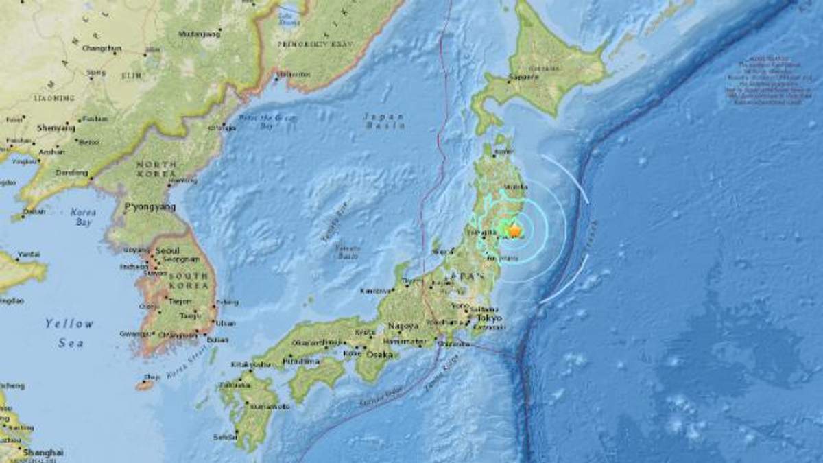 Епіцентр поштовхів залягав в морі на глибині приблизно 45 кілометрів.