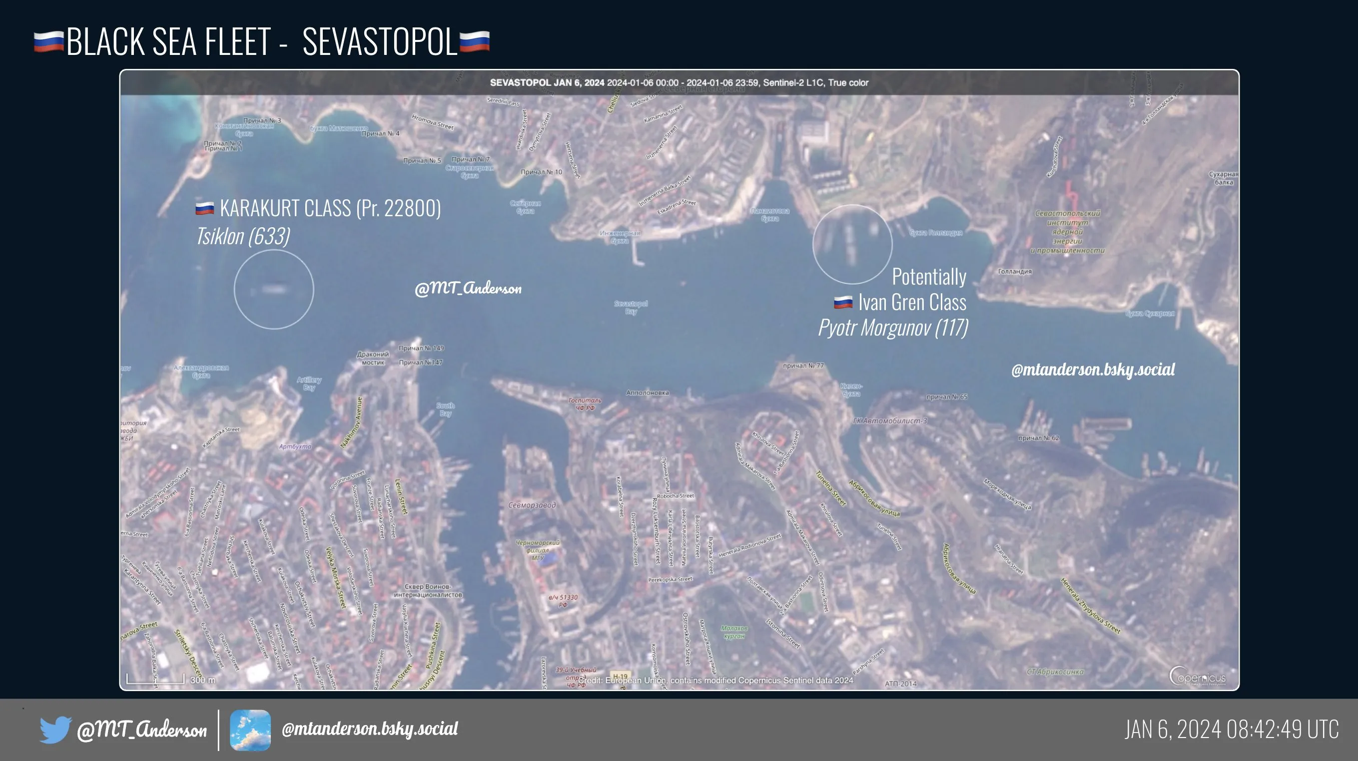 Аналітик опублікував супутниковий знімок з супутника Sentinel 2. Він датується 6 січня. На останньому знімку видно, що біля пірса в Севастопольській бухті стоїть судно. MT Anderson припустив, що це може бути новітній великий десантний корабель проєкту 11711 "Іван Грен".